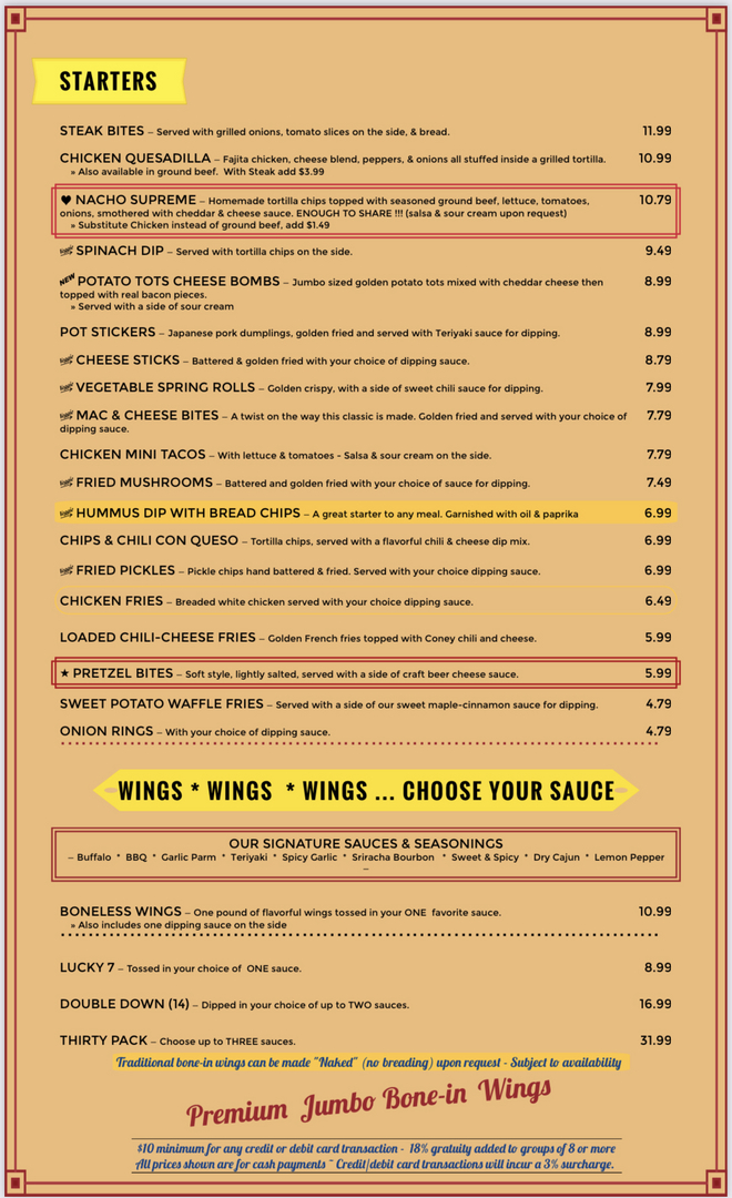 Money back guarantee. Eat like a Champp this weekend. I would go back if I did not care to listen to the game.